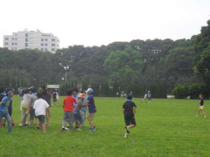 広い芝生での活動開始〜