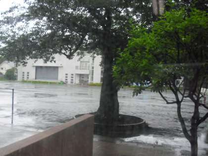校庭にも水たまりが・・・