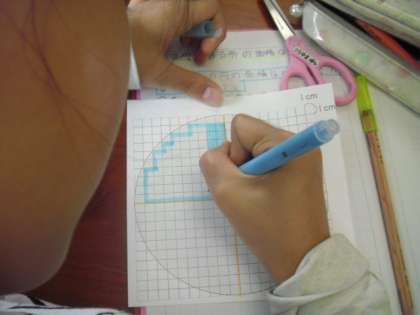 まだ学習していない曲線のある円の面積をどう求めるか、考えました。