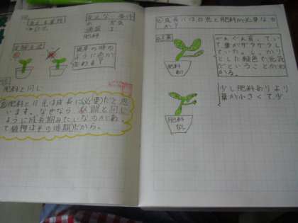 実験をもとに、新たな気付きが、今後の植物の成長を通して確認できるとよいです。