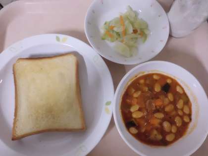 はちみつレモントースト・牛乳・ポークビーンズ・キャベツサラダ
