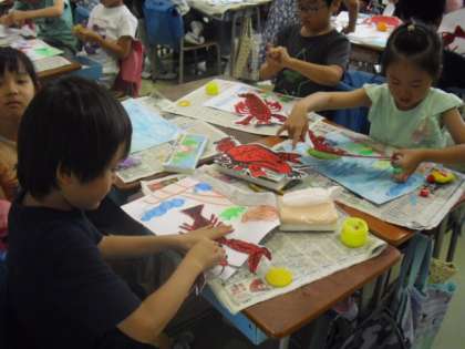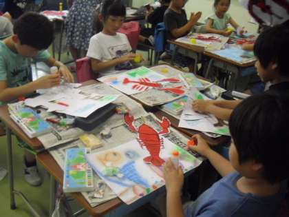 クレパスで描いたザリガニのすみかから、ザリガニが逃げ出しました〜
