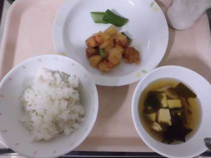 麦ごはん・牛乳・鶏肉のかわりあえ・きゅうりのひと塩・すまし汁