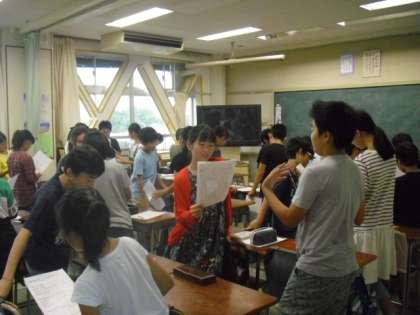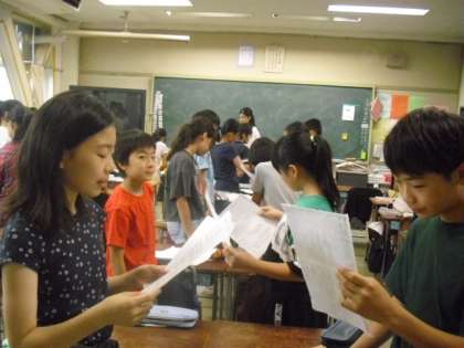 6年生も、5年生徒の自己紹介にむけ、クラスの仲間と自己紹介の練習中〜