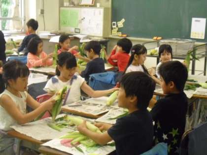 とうもろこしを食べるときに、今日の学習や皮むきを皆でした体験を思い出してくれたら嬉しいです・・・・