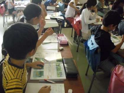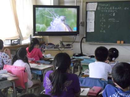 大型画面にうつされた映像も活用して、しっかり学習しました。