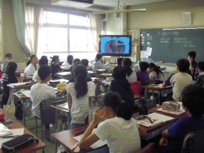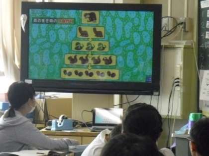 食物連鎖について、大型画面で映像を活用しての学習です。