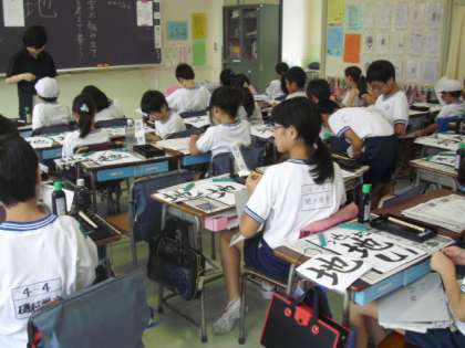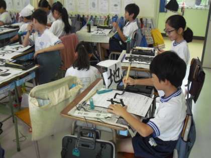 4年生の教室でも毛筆のおけいこ〜