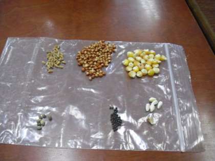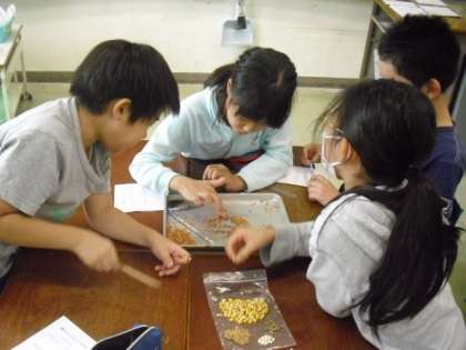 鳩のエサにどんな種類の種が入っているのか・・を、みんなで分けて調べてみました・・・