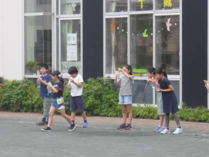 みんなで並んで・・・遠くに飛ばすことができたでしょうか・・・