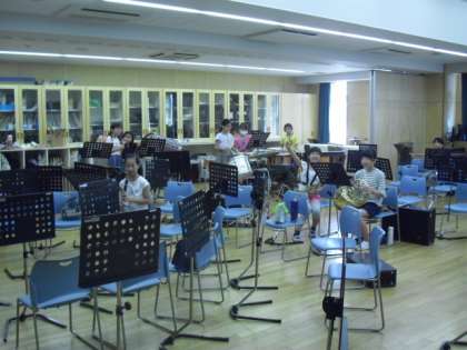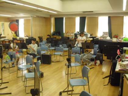 夏休み中、吹奏楽団は午後から練習ですが、午前中は、自主練習をしたり、音楽室で夏休みの課題に取り組んだりして過ごしています。