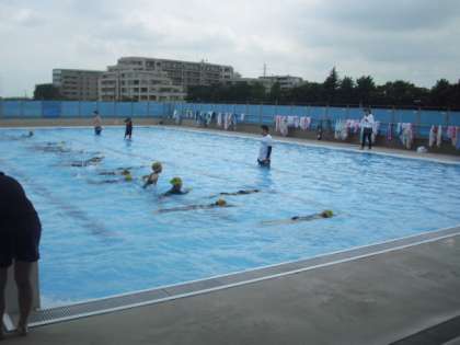 けのびを何回して向こう岸にたどり着いたか、確認しました〜