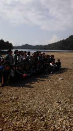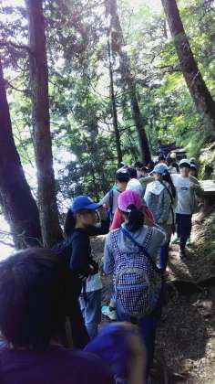 ハイキング開始です。湯ノ湖畔を散策しています。気温が高くなってきましたが、木かげは涼しく感じます。