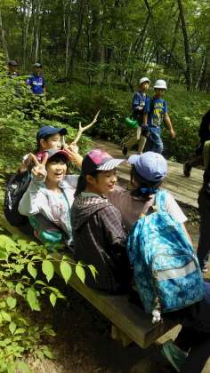 しかの角をさわって・ ・自然について、動物について、学びを深めています。