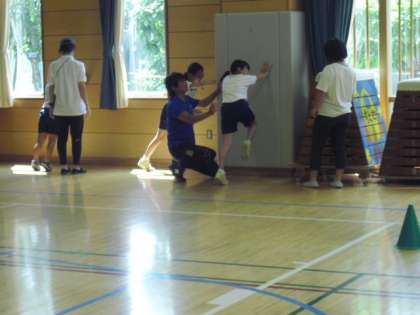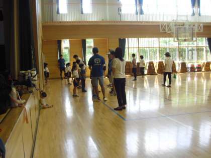 まずは体育館で、姿勢やももの上げ方について練習開始〜