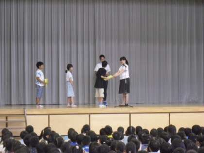 夏休み中、地域のイベントで活躍したチームに記録証を渡しました。