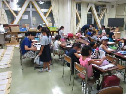 2学期の放課後算数教室(2・3年生)が始まりました。これまでの復習を中心とした課題に取り組んでいます。千歳小サポーターの方が丸付けをしてくださっています。