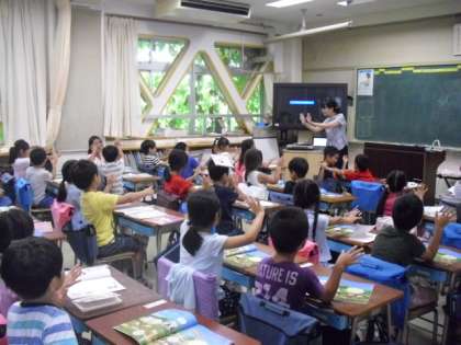 1年生の音楽です。歌に合わせてみんなで動作を付けて・・・・・