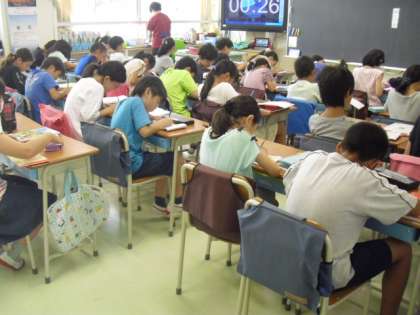 4年生は漢字練習、言葉の使い方など、国語のモジュール学習に取り組んでいます。