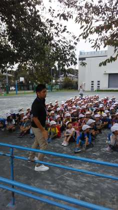 2年生が校外学習で生田緑地公園にでかけます。出発式で活動のめあてや公共のマナーを確認しました。目と耳と心を働かせ、学びの多い一日にしましょうね。