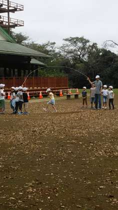 桝形山頂上につきました。みんなで長縄跳びをしたり、たるまさんが転んだをしたり、虫や木の実など秋探しをしたり楽しく活動しています