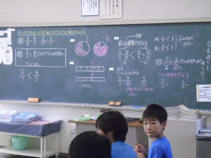 分数の大きさを比べるのに、自分なりの方法で考え、みんなで解決〜
