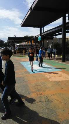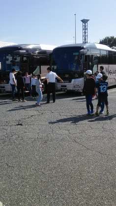 三芳PAに着きました。バスの中ではレクで盛り上がっています。