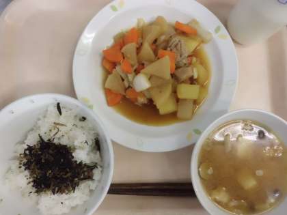 ごはん・牛乳・ひじきのふりかけ・大根と豚肉のうま煮・みそ汁