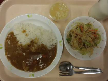 チキンカレーライス・牛乳・じゃこサラダ・角切りりんごゼリー
