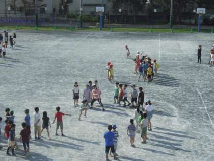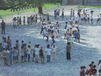校庭で長縄とびが始まりました〜