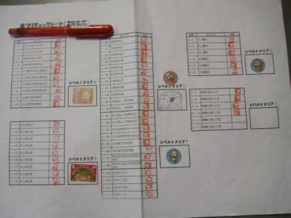 ところどころ中間のクリアポイントを設け、クリアすると頑張りシールを貼っています。