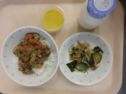 おろし豚丼・牛乳・じゃこサラダ・もりのかぼちゃプリン