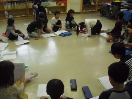 セリフの言い方や、動きなどを考えて、実際みんなでやってみました・・・