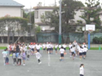 長縄に引っかからずに何回跳べるか、みんなで挑戦しています。