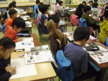 3年生が先日近隣の畑に出かけ、インタビューして教えていただいたお話をもとに、畑でのどのようなものを作っているのか、学習を進めていました。