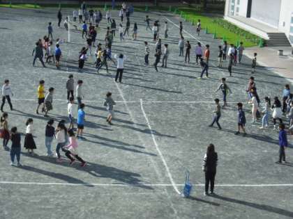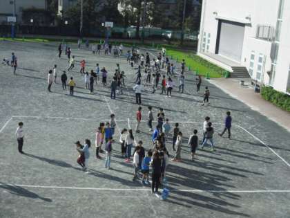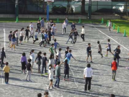校庭では体力向上にむけてドッジビーを使っての活動が始まりました〜