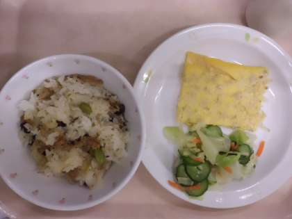 まめまめおこわ・牛乳・切り干し大根の卵焼き・野菜のごま風味
