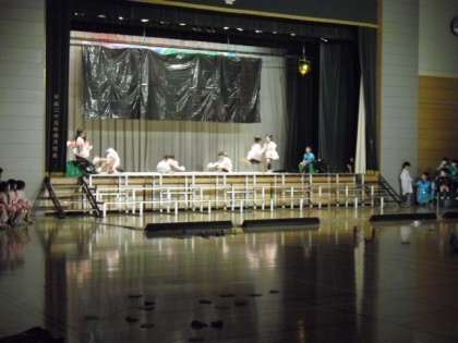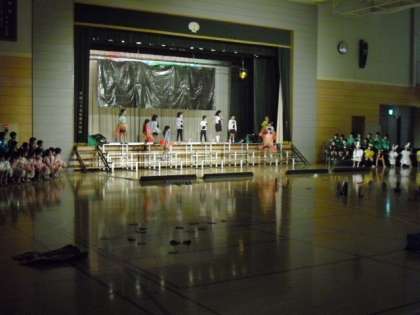 体育館のステージを使って、学習発表会の練習です。