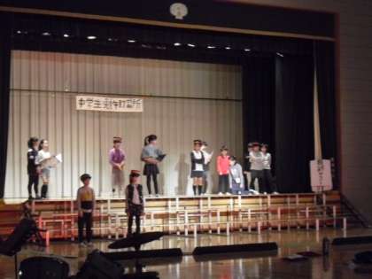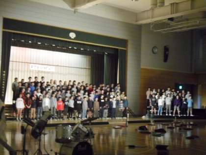学習発表会に向けて6年生がステージで練習をしています。