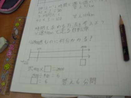速さを求めるのに、分かっていることを手がかりに、その関係を数直線上に表し、