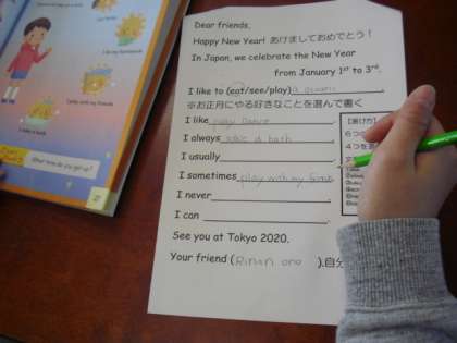 日本の文化や日本の生活について外国の小学生にお知らせする活動に取り組んでいます。