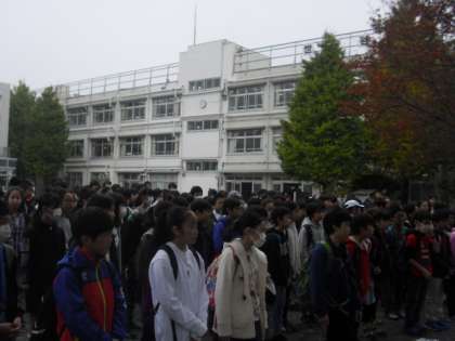 朝、校庭で出発式を行いました〜