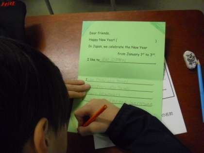 外国の友だちに自分たちのことを伝えるメッセージカードを各活動です。