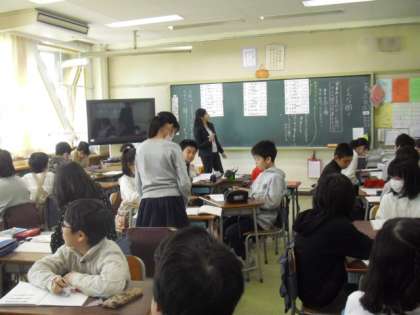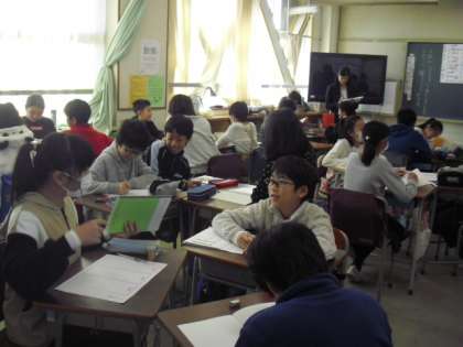 3つの国の職業アンケートの結果を基に、自分で根拠を明確にした意見を考え、小グループでの討議を経て、全体での話し合いをしました。
