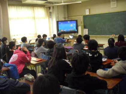 ICT教材を活用して外国語の歌を使っての言い回しの学習も・・・