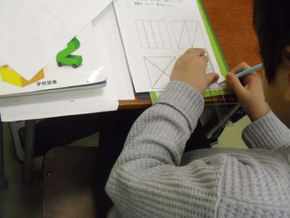 いろいろな分け方がありますが、どれももとの大きさを4つに分けた一つ分の大きさになりましたね・・・。