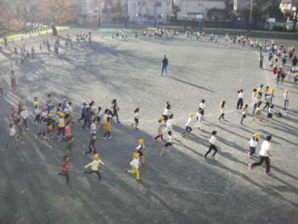 低学年は元気に校庭をかけぬけて、体力向上に取り組んでいました〜