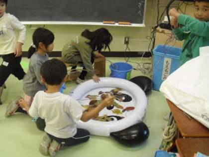 葉っぱを使った葉っぱつりに挑戦させてくれました。