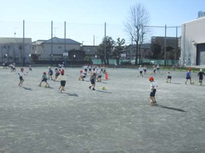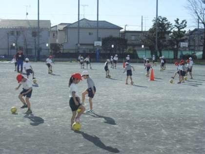 ボールゲームでは簡単なボール操作や簡単な攻めや守りのあるゲームに取り組みます。