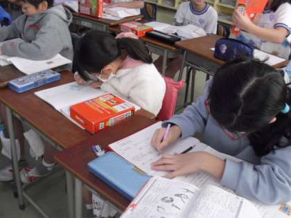 その言葉のもとのお話を聞いたり、辞書で意味を調べたりしながら、学習が進んでいました。